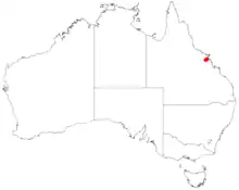 This mintbush is only known from near the type location where it grows in open forest and on the edge of rainforest.[2]