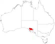 Gawler Ranges mintbush grows amongst in rocky places with scattered shrubs in the Eyre Peninsula of South Australia.[2][3]