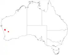 This mintbush grows on ironstone gravel on plains and is only known from near Pindar in the Avon Wheatbelt biogeographic region, where its population size is decreasing due to land clearing.[2][3]
