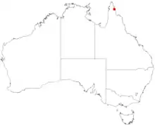 This mintbush is only known from the summit of Mount Tozer in the Iron Range in far north Queensland, where it grows in exposed situations amongst boulders.[3]