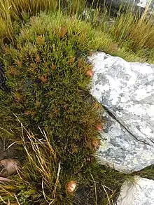 In 1829 Drège originally collected it growing in rocky locations,[8][9] together with the other plant species Restio laniger, Seriphium plumosum, Leucadendron dregei, and a Sorocephalus, Erica, Hoplophyllum and Calopsis of some kind.[6]