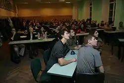 Protmušis (literally "Mindfight" in Lithuanian) is a team pub quiz-type game (where the teams play against each other) that takes place in Vilnius, Lithuania. The organisers and participants of Protmušis are mainly students from various universities in Vilnius. All major universities of Vilnius are represented in Protmušis (including all the faculties of Vilnius University, some faculties of Vilnius Gediminas Technical University, Mykolas Romeris University, Vilnius Academy of Fine Arts, ISM University of Management and Economics and the Vilnius Pedagogical University) as well as the Kaunas University of Technology and Vytautas Magnus University of Kaunas and the Stockholm School of Economics in Riga; in addition, some people who had already graduated and those who are not yet studying in universities take or were taking part in the competition as well. Protmušis was organized for the first time in 1997. About 250 people (38 teams) have chosen to participate in the twelfth season of Protmušis, which started in March 2009.