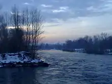 Several rivers flow across the Lombardy Plain to join the Po which runs along the southern border of the province. The Adda separates Cremona from the Province of Lodi and the Oglio provides the border with the Province of Mantua. Other rivers in the north of the province include the Serio and the Tormo, and the Mella makes up a short stretch of the border with the Province of Brescia.[3] These rivers are linked by a network of canals which have been in place since at least the sixteenth century and are largely used for irrigation.[4] The Muzza Canal takes its water from the river Adda and irrigates the land between that river and the river Ticino, converting the plain into a fertile area with rich meadows and productive agricultural land.[5]