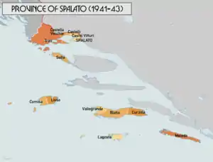 Italy created some provinces (administrative districts) in that region, that lasted until September 1943. One was the province of Spalato. The administrative capital was the city of Spalato (Italian name for Split).[1]