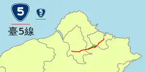 Provincial Highway 5 (Chinese: 台5線) is a 27.916 km-long provincial Taiwanese highway that connects Taipei and its nearest port Keelung. Before the freeway system was built, this was the primary route for goods transportation. The road is a major avenue (known as Zhongxiao East Road) in Taipei city, and is the north–south divide for the city. It also passes through downtown Xizhi and Keelung.