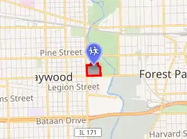 Proviso East High School is a public secondary school in Maywood, Illinois which serves the educational needs of Maywood and three other villages within Proviso Township, Cook County, Illinois: Broadview, Forest Park and Melrose Park. It is the original campus of Proviso Township High Schools District 209. Prior to being split into East and Proviso West High School in 1958, East was known as Proviso Township High School. The school is located at the intersection of Madison Street and First Avenue (which is Illinois Route 171 in that part of Maywood).