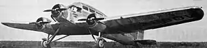 The Prudden-Whitehead monoplane is an all-metal low-wing cantilever monoplane with a monocoque fuselage and powered by three 240 hp (179 kW) Wright R-760 piston engines.[2] It has a conventional fixed landing gear with a tailwheel. It has an enclosed passenger cabin for eight to ten passengers and a washroom and toilet.[2] Only two of the trimotors were built.[1]