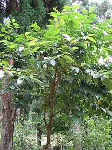 Prunus zippeliana or big leaf cherry (Chinese: 大叶桂樱, Da ye gui ying) is a species of Prunus native to China, Japan, and Vietnam.[2] Individuals have been found in Thailand.[3] It prefers to grow in mixed forests and thickets on calcareous mountains 400 to 2400 m above sea level. In a 1994 study, P. zippeliana was found to be the best in the genus Prunus at preventing melanin synthesis.[4] It is an important winter host plant for Asphondylia yushimai, the soybean pod gall midge, which is a major pest of soybeans in Japan.[5]