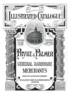 Pryke & Palmer Ltd. was a company of ironmongers and builders' merchants,[1] in the City of London, England. Their illustrated and extensive catalogues (a 1 November 1894 edition in Australia's Caroline Simpson Library has 782 pages[2]) have become sought-after by collectors, with some reproduced in facsimile editions.[3]