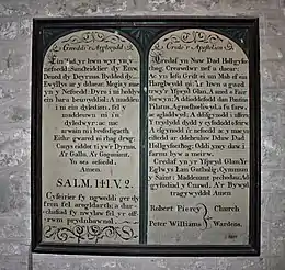 ![]() Psalm 141:2 in Welsh on the boards on West wall (dated 1809). St Mary's Church, Cilcain Flintshire, North Wales. |