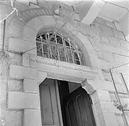 ![]() The German inscription on the doorpost of a building in Jerusalem (1948) "The LORD loveth the gates of Zion more than all the dwellings of Jacob" from Psalm 87:2. | |