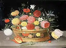Pseudo-Jan van Kessel the Younger or Pseudo-Jan van Kessel the (II) is the notname given to an artist or workshop to whom or which are attributed about 200 small still lifes likely dating to the late 16th and early 17th century. The artist's works rely on combinations of a limited number of motifs in rather simple to quite elaborate compositions. The motifs in the paintings are rendered in a rather naive and decorative manner.[1] While the Flemish influence in the works hints at a Flemish artist or an artist who trained with a Flemish artist, the artist is believed to have been active in southern Europe, probably Italy.[2]