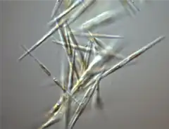 The diatom lineage may go back 180 to 250 million years ago (Mya). About 65 Mya, diatoms survived a mass extinction in which roughly 85% of all species perished.[6] Until 1994, the genus was known as Nitzschia, but was changed to Pseudo-nitzschia because of the ability to form chains of overlapping cells, as well as other minor morphological differences.[8] While the genus can be readily recognized using light microscopy, identification of distinct species can require taxonomic expertise and be extremely time-consuming. Species identification in this genus is notoriously difficult due to the presence of cryptic species. Similar species are often differentiated by very small differences in the frustule, such as shape, period, and band stria.[3]