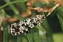 The larvae feed on Abies alba and Picea abies species. They mine the needles of their host plant. Current year's needles are mined out from a silken tube attached to a twig. Most frass is ejected into the tube. Older larvae vacate the mine and live freely, feeding among spun needles.[4] The larvae are brownish with a shining black head. The species overwinters in the larval stage.