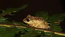 Pseudophilautus dilmah, the Dilmah shrub frog, is a species of frogs in the family Rhacophoridae, endemic to Sri Lanka.[1] The species was discovered and documented in 2015 by Sri Lankan prominent wildlife researcher and herpetologist Mendis Wickramasinghe and his crew from Loolkandura forest of Central highlands of Sri Lanka. It is distinguished mainly from other shrub frogs by the absence of nuptial pads and anterior and posterior dorsum without horny spinules.[2] [3]