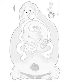 Pseudorhabdosynochus malabaricus is a small monogenean, 0.6 mm in length. The species has the general characteristics of other species of Pseudorhabdosynochus, with a flat body and a posterior haptor, which is the organ by which the monogenean attaches itself to the gill of is host. The haptor bears two squamodiscs, one ventral and one dorsal. The sclerotized male copulatory organ, or "quadriloculate organ", has the shape of a bean with four internal chambers, as in other species of Pseudorhabdosynochus.[2] The vagina includes a sclerotized part, which is a complex structure. In this species, both primary and secondary chambers of the sclerotised vagina are spherical.