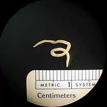 Pseudoterranova is a genus of parasitic nematodes with an aquatic life cycle within family Anisakidae. The lifecycle of Pseudoterranova spp. involves marine mammals, pinnipeds (sea lions, seals and walruses) as definitive hosts,[1] planktonic or benthic crustaceans as intermediate hosts and fish which act as second intermediate or paratenic hosts.[2] In some regions, the rise in seal numbers has prefaced a significant increase in fish infected with P. decipiens[3] which is of concern for fish health. Infection with Pseudoterranova may affect the health and swimming ability of the fish host and is therefore of concern for the survival of wild caught and farmed species.[4] Species belonging to this genus have been demonstrated to cause illness of varying exigency in humans if raw or under cooked infected fish is consumed.[5] Cases of human infection have been reported from consuming partially cooked fish infected with Pseudoterranova decipiens,[6] Pseudoterranova cattani[7] and Pseudoterranova azarasi.[8] The propensity of P. decipiens to encyst in the edible portion of fish musculature may make this parasite a considerable threat to human health in undercooked fish.[9]