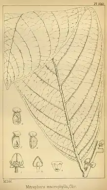 | Botanical illustration of Pseuduvaria macrophylla using the synonym Mitrephora macrophylla | |