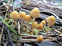 P. semilanceata has also been confused with the toxic muscarine-containing species Inocybe geophylla,[30] a whitish mushroom with a silky cap, yellowish-brown to pale grayish gills, and a dull yellowish-brown spore print.[31] Other similar species include P. cubensis, P. cyanescens, and Deconica coprophila.[22]