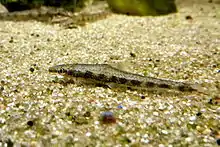 Psilorhynchus sucatio, the river stone carp or sucatio minnow, is freshwater ray-finned fish a species of torrent minnow. The specific name is a latinization of one of the local names for this species, sukati.[3] It is a widely distributed species and is found in Nepal and Bangladesh as well as the Indian states of Arunachal Pradesh, Assam, Bihar, Manipur, Meghalaya, Nagaland, Uttar Pradesh and West Bengal. P. sucatio occurs in water with a fast current preferring the edges of sandy streams. In the lowlands it is abundant near emergent or overhanging vegetation, it is an altitudinal migrant. At a maximum length of 5 cm it is too small to be of any interest to fisheries but it is collected for the aquarium trade.[1] It is the type species of the genus Psilorhynchus.[4]