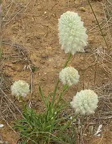 Ptilotus macrocephalus (commonly as featherheads, green mulla mulla or green pussytails) is a native Australian perennial herb growing up to 50 centimetres (20 in) high.[1] The species was originally described as Trichinium macrocephalum by Robert Brown in 1810 based on specimens from Victoria, Australia.[2] In 1816, it was first transferred to the genus Ptilotus by Jean Louis Marie Poiret.[3] While once considered distributed throughout most of the Australian mainland, current research limits the distribution of P. macrocephalus to south-eastern Australia, mostly in south-eastern South Australia, Victoria and New South Wales.[1] A study by Hammer et al. (2019) determined that specimens previously identified as P. macrocephalus are morphologically and ecologically distinct species, the now named Ptilotus xerophilus T.Hammer & R.W.Davis (arid central and western Australia) and Ptilotus psilorhachis T.Hammer & R.W.Davis (eastern Queensland).[1]
