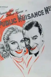 Public Nuisance No. 1 is a 1936 British musical comedy film directed by Marcel Varnel and starring Frances Day, Arthur Riscoe and Muriel Aked.[1] It was made at Beaconsfield Studios.[2] The screenplay concerns a young man who goes to work as a waiter at his uncle's hotel in Nice.[3]