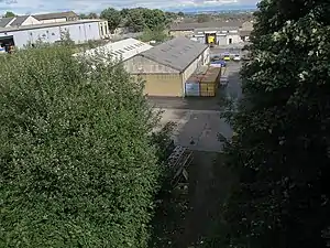 ![]() Site of the former Pudsey Greenside station (2016), looking east from the bridge of Carlisle Road | |