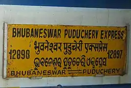 The Puducherry– Bhubaneswar Superfast Express is a Superfast train belonging to East Coast Railway zone that runs between Puducherry and Bhubaneswar in India. It is currently being operated with 22907/22908 train numbers on a weekly basis.[1] [2] [3]