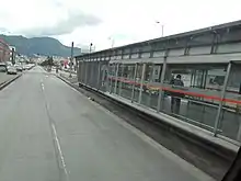 The simple station Puente Aranda, is part of the TransMilenio mass-transit system of Bogotá, Colombia, which opened in the year 2000.