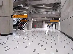The platforms of the original project of the line 3 are located underneath the line 2 side of the station.