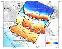 A magnitude 4.5 earthquake occurred on September 18, 2020, on the Puente Hills Fault and was centered 2 miles southwest of South El Monte, California. It had a maximum Mercalli intensity of VI (Strong).[9]