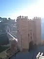 During the reign of Alfonso X of Castile it suffered serious damage and was rebuilt. The western tower belongs to this period, later decorated under the reign of the Catholic Monarchs, whose arms decorate its walls. The fruit of the pomegranate (the emblem of Granada) is missing from them, because the Reconquista had not finished at that time.