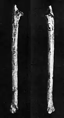 The earliest residues of the crow were found in 1916, in the karst cave Cueva San Miguel near Morovis, Puerto Rico. It was a right ulna (AMNH 4925), which Alexander Wetmore described in 1920 as a holotype for his first description of the species C. pumilis. Wetmore did not comment on the etymology of the epithet pumilis, which means "dwarfish" in Latin. There are no insights on its relationships with other species of its genus within and beyond the Caribbean.[1]