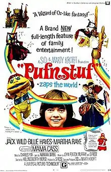 Pufnstuf (sometimes referred to as Pufnstuf Zaps the World) is a 1970 American comedy fantasy musical film produced by Sid and Marty Krofft Enterprises and released by Universal Pictures. It is based on the children's television series H.R. Pufnstuf, a show that features a cast of puppets on a "living island".