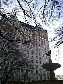 Pulitzer Fountain is an outdoor fountain located in Manhattan's Grand Army Plaza in New York. The fountain is named after newspaper publisher Joseph Pulitzer who died in 1911 having bequeathed $50,000 for the creation of the fountain. Pulitzer intended his fountain to be "like those in the Place de la Concorde, Paris, France."[1] The fountain was designed by the architect Thomas Hastings, and crowned by a statue conceived by the sculptor Karl Bitter.[2] The fountain was dedicated in May 1916.