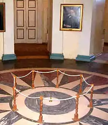 The zero-point of the Pulkovo meridian in the Round hall of the Pulkovo observatory