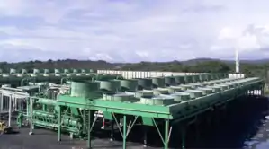 Two power plants operate in the Puna Complex. The first plant consists of ten Combined cycle Ormat Energy Converters (OEC) made up of ten steam turbines and ten binary turbines and opened in 1993.[41] The second plant consists of two Binary cycle OECs that entered service in 2011 and commenced commercial operation in 2012.