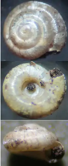 | Dorsal, ventral and apertural views of a shell of Punctum blandianum. | |