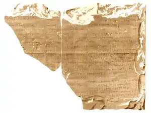 Animals and other valuables were sacrificed to propitiate the gods; such sacrifices had to be done according to strict specifications,[19] which are described on nine surviving inscriptions known as "sacrificial tariffs."[25] The longest of these is KAI 69, known as the Marseille Tariff, after its find-spot, which probably originally stood in Carthage. It lists the portions of sacrifices that the priests of a temple of Baal Saphon were entitled to. The other sacrificial tariffs are CIS I.165, 167–170, 3915–3917, all found in North Africa. These tariffs are similar to a pair of fifth-century BC tariff inscriptions found at the Phoenician city of Kition in Cyprus. They also share some terminology and formulae with Ugaritic and Biblical Hebrew texts on sacrifice. There is also a list of festival offerings, CIS I.166 and many short votive inscriptions, mostly associated with the tophets.[65] Many of these tophet inscriptions refer to the sacrificial ritual as mlk (vocalized mulk or molk), which some scholars connect with the biblical Moloch.[66][67] Votive inscriptions are also found in other contexts; a long inscription on an eighth-century BC bronze statuette found at Seville dedicates it to Athtart (KAI5 294).[68] A fifth-century BC inscription (KAI 72) from Ebusus records the dedication of a temple, first to Rašap-Melqart, and then to Tinnit and Gad by a priest who states that the process involved making a vow.[69] A stele erected at Carthage in the mid-second century BC by a woman named Abibaal shows the sacrifice of a cow's head by burning on an altar; the details of the image show continuity with much earlier Near Eastern sacrificial rituals.[70]