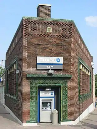 The Purdue State Bank Building is a historic structure in West Lafayette, Indiana, United States, designed by American architect and Frank Lloyd Wright's mentor Louis Sullivan. Completed in 1914, the bank is the smallest and least expensive of Sullivan's "Jewel Boxes", a series of Midwestern banks designed in the modern style at the end of his career. Built on a tiny, trapezoidal lot between two streets, the structure is less ornamental than most of the architect's other work, including only a few terra cotta panels.[1][2] The building cost $14,600 to be constructed, of which only about 10% was paid to Sullivan, barely covering his expenses. A local paper at the time referred to Sullivan as "one of the most noted bank architects in the United States".[3]