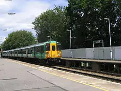 Purley Oaks railway station is in the London Borough of Croydon in south London, on the Brighton Main Line 12 miles 34 chains (20.0 km) measured from London Bridge.[2] All trains serving it are operated by Southern and it is in London Travelcard Zone 6. The station has four platforms: a disused side platform on the up fast line, an island platform with a disused face on the down fast line and an eastern face used by up trains, and a side platform on the eastern side used by down trains. The two platforms are only used during engineering works. There is also a pay-and-display car park at the station.