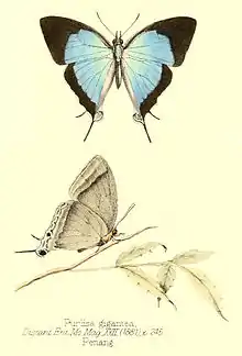 - Distant, W. L., 1881. Description of a new species of Lycaenidae from Penang. Entomologist's Monthly Magazine. 17: 245.