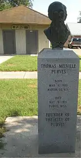 Purvis is a U.S. city in and the county seat of Lamar County, Mississippi.[4] It is part of the Hattiesburg, Mississippi Metropolitan Statistical Area. The population was 2,175 at the 2010 census. The Town of Purvis was incorporated on February 25, 1888 [5] and was founded by and named after Thomas Melville Purves, originally of Marion County, Alabama. Purves, born March 8, 1820, was a second generation Scottish-American; his grandfather emigrated to Charleston, South Carolina in 1765.[6]