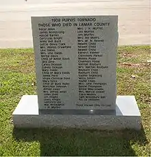 On April 24, 1908, three F4 (207-260 mph) tornadoes left a line of destruction from Livingston Parish, Louisiana northeast to Wayne County. This line of storms left 143 people dead, with 83 dead in Purvis alone. From the reports of Dr. H.R. Hermesch, Assistant Surgeon U.S. Navy and the Relief Committee at Purvis, we know that there were 83 dead, 340 wounded and 1935 destitute in the town of Purvis. The large "Town Clock" in the domed tower of the courthouse of the time, sustained damage from flying debris and was stopped at 2:13 in the afternoon.
