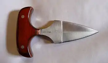 A push dagger (alternately known as: punch dagger, punch knife, or push knife) is a short-bladed dagger with a "T" handle designed to be grasped in the hand so that the blade protrudes from the front of one's fist, typically between the index and middle finger.[1][2] It originates as a close-combat weapon for civilians in the early 19th century, and also saw some use in the trench warfare of World War I.[2][3]