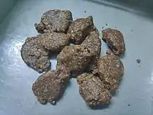 Pustakari (Nepali: पुष्टकारी pronounced [ˈpusʈʌkaɾi] (listen)) is a Nepali candy,[1] which is made from molasses, which is cooked with ghee, milk and topped with coconut, dates or nuts. In Kathmandu valley, where the Newar confectioners have refined the art of preparing it, it is known in Nepal Bhasa as 'postikan'.