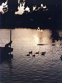 Downstream of Monticello Dam, on the southeastern corner of the lake, Putah Creek leaves Napa County and becomes the boundary between Yolo County and Solano County flowing about 13 kilometres (8.1 mi) to the Putah Diversion Dam (PDD), where most of water flows are diverted south through the Putah South Canal to users in Solano County. In this section the creek offers excellent fishing opportunities year round. California Department of Fish and Wildlife regulations require "catch and release" in this section of the stream, as well as the use of artificial lures with barbless hooks.[9] The California Office of Environmental Health Hazard Assessment (OEHHA) has developed a safe eating advisory for fish caught in Putah Creek based on levels of mercury or PCBs found in local species.[10] Stormwater runoff from a nearby Superfund site formally known as the Laboratory for Energy-Related Health Research (LEHR), has shown elevated levels of Mercury reaching 500 ng/L entering Putah Creek. While the site has been decommissioned since the late 1980s and federally listed as a National Priority Superfund site by the EPA in 1994, the amount of contamination to the soil, groundwater aquifer, and nearby Putah Creek, continue to be a hazard to the area. This concentration of mercury in Putah creek creates health risks for anything that may eat the fish, as the bioaccumulation of mercury found in the fish passes along the food web to birds and potentially humans.[11] The stream continues east along State Route 128, receiving Pleasants Creek[12] before arriving at Lake Solano where the Putah Diversion Dam diverts flows to the Putah South Canal, carrying water to the residents of Vallejo.