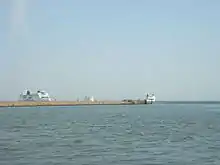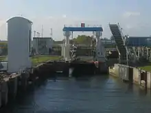 The port next to the station area has four docks, two of them with ramps allowing passengers to board and disembark. Only the basin adjoining track 2 and 3 is still used to operate trains and rail wagons on and off the train ferry. The Deutsche Ferienroute Alpen-Ostsee (German Alpine–Baltic Holiday Route) ends in Puttgarden after 1738 kilometres.