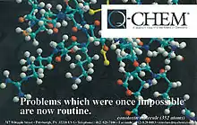 In preparation for the first commercial release, the company hired Eugene Fleischmann as marketing director and acquired its URL www.q-chem.com in January 1997. The first commercial product, Q-Chem 1.0, was released in March 1997. Advertising postcards celebrated the release with the proud headline, "Problems which were once impossible are now routine"; however, version 1.0 had many shortcomings, and a wit once remarked that the words "impossible" and "routine" should probably be interchanged![8] However, vigorous code development continued, and by the following year Q-Chem 1.1 was able to offer most of the basic quantum chemical functionality as well as a growing list of features (the continuous fast multipole method, J-matrix engine, COLD PRISM for integrals, and G96 density functional, for example) that were not available in any other package.[6][8]