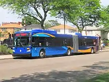 On August 31, 2014, the Q113 local was converted into a limited-stop service called the Q114, running along Guy R. Brewer Boulevard, 147th Avenue, and Brookville Boulevard, and local in Nassau County and the Rockaways. The limited stops eliminated in 2011 were restored for Q114 service, with two additional limited stops added.[1][62] The 2007, 2011, and 2014 changes had originally been proposed in a Urbitran Associates study for the New York City Department of Transportation in 2004, when the bus routes were privately operated.[29] On January 4, 2015, Q114 local service was expanded into evening hours, and Q114 local service now began operating after Q113 Limited service ends.[63] On February 1, 2015, Q114 Limited service started stopping at 147th Avenue and 230th Place (Jamaica-bound) and 147th Avenue and 230th Street (Far Rockaway-bound).[64] In 2016, the corridor began operating low-floor articulated buses in conjunction with its standard-length fleet. This was planned going back to 2012.[65][66][67] In August 2016, the MTA announced plans to eventually convert the Q113 into a Select Bus Service (SBS) route;[68][69] this had been previously proposed by the Pratt Center for Community Development.[70][71]